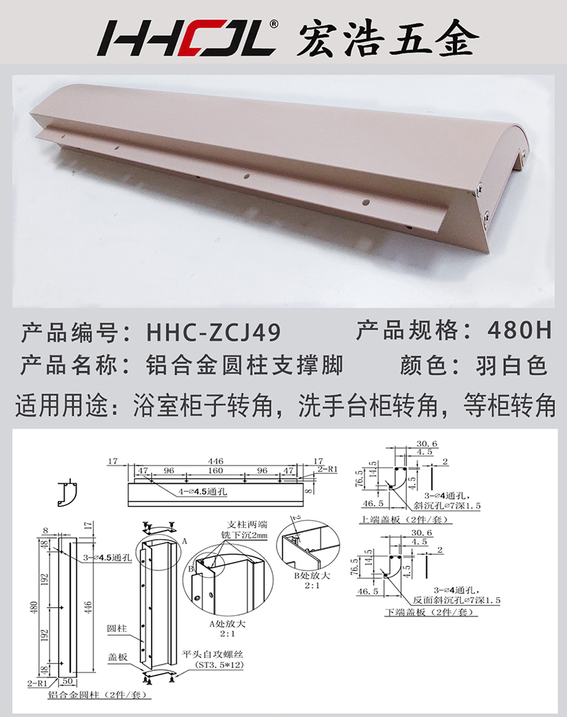 HHC-ZCJ49铝合金圆柱支撑脚羽白色