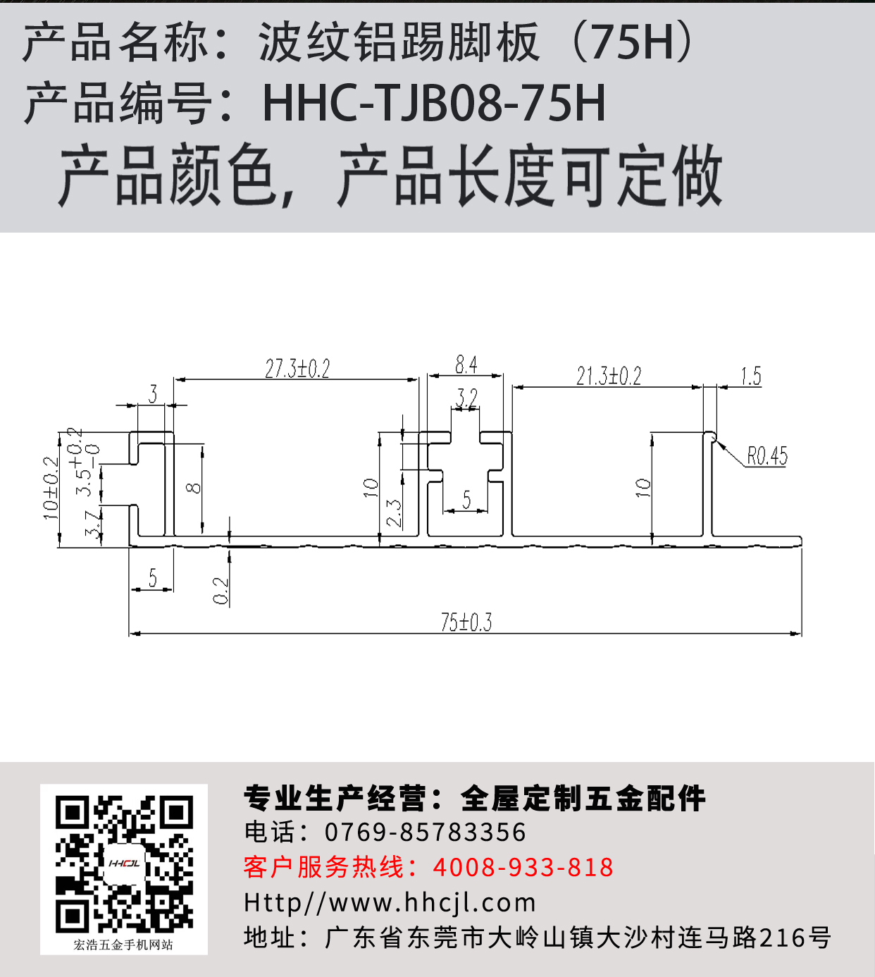 波纹铝踢脚板-75H