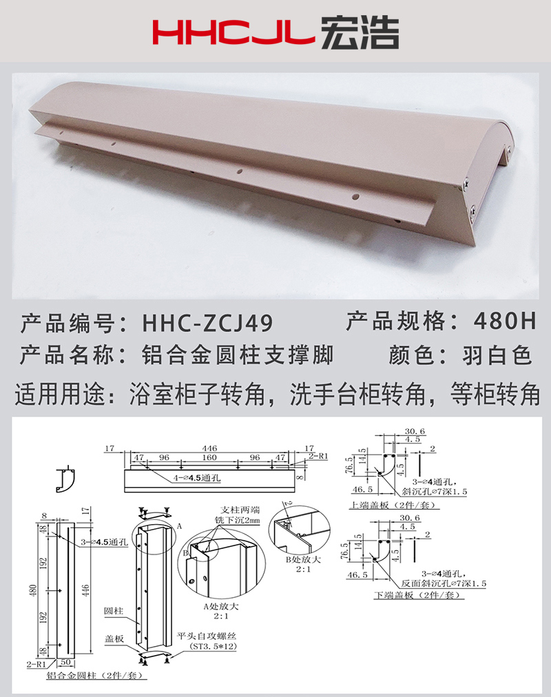 HHC-ZCJ49铝合金圆柱支撑脚羽白色